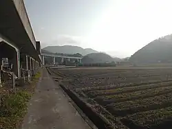 View of Fukuoka's family farm (center right) and hill in Iyo, Ehime