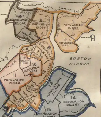 1963: Boston (Wards 4- 17, 19, 20).[11]