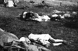 Massacres of Albanians in the Balkan Wars were perpetrated on several occasions by the Serbian and Montenegrin armies and paramilitaries between 1912 and 1913.[1][2] During the 1912–13 First Balkan War, Serbia and Montenegro committed a number of war crimes against the Albanian population after expelling Ottoman Empire forces from present-day Albania, Kosovo, and North Macedonia, which were reported by the European, American and Serbian opposition press.[3] Most of the crimes occurred between October 1912 and the summer of 1913. The goal of the forced expulsions and massacres was statistical manipulation before the London Ambassadors Conference to determine the new Balkan borders.[3][4][5] According to contemporary accounts, around 20,000 to 25,000 Albanians were killed in the Kosovo Vilayet during the first two to four months, before the violence climaxed.[6] The total number of Albanians that were killed in Kosovo and Macedonia or in all Serbian-occupied regions during the Balkan Wars is estimated to be at least 120,000.[7][8][9][10][11][12] Most of the victims were children, women and the elderly.[13][14] In addition to the massacres, some civilians had their lips and noses severed.[15] Multiple historians, scholars, and contemporary accounts refer to or characterize the massacres as: localized genocide, extermination, genocide of Albanians or part of the wider genocide against Muslims. Further massacres against Albanians occurred during the First World War and continued during the interwar period.