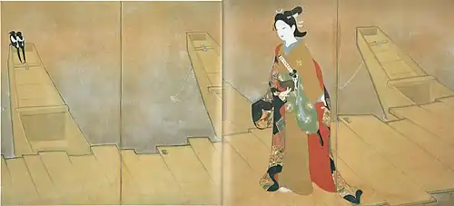 Matsumoto Ichiyō (梥本 一洋; 1893–1952) was a Japanese painter active during the Taishō and Shōwa eras. He was born in Kyoto into a family of yūzen fabric dyers. He graduated from the Kyoto Municipal Special School of Painting in 1915, and then continued his studies with Yamamoto Shunkyo (1871–1933).[1]
