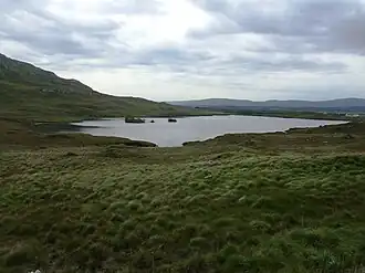 Maumwee Lough is about 2 kilometres (1.2 mi) north of Maam Cross and by the R336 road. The lake drains to the south and is part of the Corrib catchment.[2]