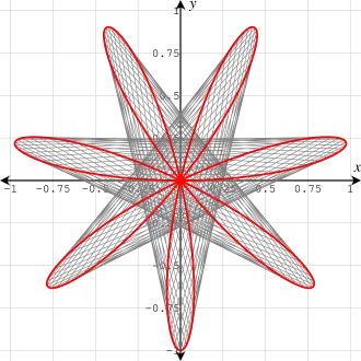 In geometry, the concept of a Maurer rose was introduced by Peter M. Maurer in his article titled A Rose is a Rose...[1]. A Maurer rose consists of some lines that connect some points on a rose curve.
