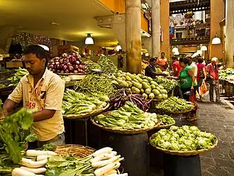 The cuisine of Mauritius is shaped both by the island's tropical location and by the cultural diversity that characterizes the country.[1] Mauritian cuisine is a blend of African, Chinese, European (mainly French) and Indian (primarly Bhojpuri) influences in the history of Mauritius.[1][2][3][4] Most of the dishes and culinary traditions are inspired by French culture, African slaves, Indian laborers, and Chinese migrants who arrived in the country during the 19th century.[5][4]