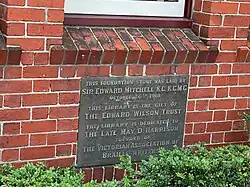 A foundation stone and plaque for the Library was laid by Edward Fancourt Mitchell on 26 October 1918, and was dedicated to May Harrison.[12] It was inscribed:[16][17]