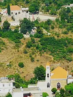 During the Mamluk era (13th–15th century), local chieftain Sheikh Nawfal Ibrahim El-Khoury bestowed the ruins of the monastery to an ancestor of Al-Husseini family, Sayyid Hussein al-Husseini. Al-Husseini is said to be the first person to reside in the abandoned area after he had restored the monastery.[2] The village is mentioned in Tannus al-Shidiaq's 1859 Akhbar al-aʿyan fi Jabal Lubnan (The History of the Notables in Mount Lebanon) as part of the Muqataʿaof Jebbet al-Mnaitra in the Muʿamala of Tripoli, a then subdivision of Mount Lebanon.[a][6] During the Mutasarrifate era (1861–1918), the village was administratively part of the Mnaitra mudiriyah, within the kaza of Kesserwan.[6][7]