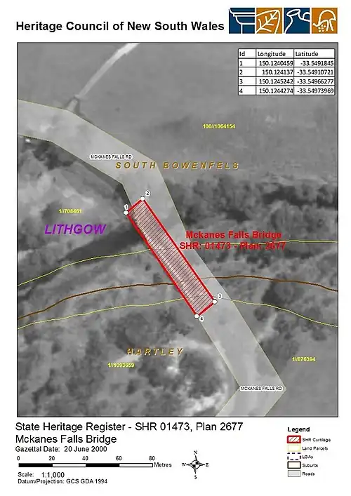 - ^ a b c d e f g h i j k l m n o "McKanes Falls Bridge". New South Wales State Heritage Register. Department of Planning & Environment. H01473. Retrieved 2 June 2018.