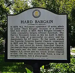 After becoming a criminal judge, William S. McLemore bought 15 acres of land in 1873, with plans to subdivide it for residences. One account is that he named it Hard Bargain because of the negotiating he had to go through to make the deal.