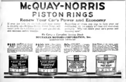 McQuay-Norris was a maker of automobile engine parts such as piston rings, and chassis parts like steering wheel knuckle bolts.[1] It also produced and distributed electrical controls for gas appliances. Based in St. Louis, Missouri, the company merged with Eaton Yale & Towne Inc., Cleveland, Ohio, in August 1969.[2] Prior to the merger, the McCord Corporation, of Detroit, Michigan, acquired 10.5% of McQuay-Norris common stock, in June 1969.[3]