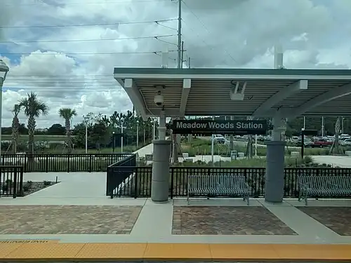 Meadow Woods station is a train station in the community of Meadow Woods, Florida. It is located along the southern phase of SunRail, the commuter rail service of Greater Orlando. The station is named after the community where it is located, but also serves the Southchase community.