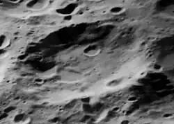 Mechnikov is an impact crater on the far side of the Moon. It is located just to the northeast of the much larger walled plain Galois, being separated by a stretch of irregular terrain about 20–30 km in width.