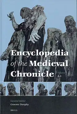 9. ^ Graeme Dunphy. Encyclopedia of the Medieval Chronicle. Leiden: Brill. 2009. ISBN 90-04-18464-3. See page viii for the link to the Chronicle Society. Reviews: The Medieval Review Archived 2012-10-03 at the Wayback Machine August 2010; Frankfürter Allgemeine Sonntagszeitung 3 August 2011; Aetas 20 (2011), 208-11; IASL-Online; Modern Language Review 107 (2012), 1226-28; Francia-Recensio, 2012; Cahiers de Recherches Médiévales et Humanistes, 2011; Revue des Etudes Sud-Est Européennes / Journal of South-East European Studies, 50 (2012), 365-366; Romania, 131 (2013), 228-229; H-Soz-u-Kult, 2012; Mediaevistik, 24 (2012), 381-383; Das Mittelalter, 17 (2012), 153-154; Historische Zeitschrift, 296 (2013), 174-175; sehepunkte, 13 (2013), Nr. 6.