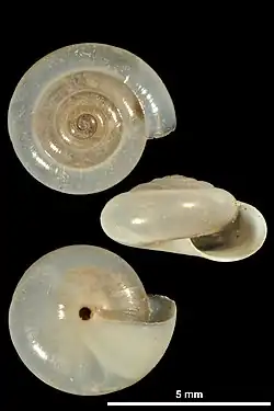 | Shell of Mediterranea hydatina hydatina (specimen at MNHN, Paris) | |