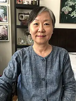 During and after her time in these careers, she has exhibited her design and studio art internationally. She curated an exhibition of Korean poster design that brought the works of 19 of Korea's leading graphic designers to a global audience[4][7] and also exhibited and lectured on her own work in brand design.[5][8] Her paintings have been shown in solo and group exhibitions around the United States and abroad.[9][10][11] In 2021, she won the Butler Institute of American Art Award for her oil painting.[12]