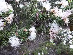 Melaleuca bromelioides is a plant in the myrtle family, Myrtaceae and is endemic to the south-west of Western Australia. It has distinctive, pine-like, prickly leaves and flowers that change colour from white to reddish as they age.