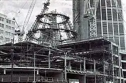 1989 - Melbourne Central during construction, including the glass cone around the shot tower.