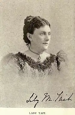 Melbourne McTaggart Tait, then an advocate, married 1878 his second wife Lily M. Kaighn, daughter of Henry B. Kaighn, of Newport, R. I. Lady Tait performed as an actress, after her marriage, with the Montreal Garrick Club, of which her husband was President. The couple lived at 994 Sherbrooke Street, Montreal.[3]