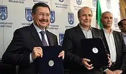 After he returned from military service, Gökçek set up a business. Then, as a member of the Motherland Party, he acted from 1984 to 1989 as the Mayor of Keçiören, a district in Ankara, under the leadership of the Mayor of Ankara Metropolitan Municipality, Mehmet Altinsoy.[3] Subsequently, Melih Gökçek ran the Social Services and Child Protection Society as its General Director from 1989 to 1991. In 1991, he entered the parliament as Ankara MP for the Welfare Party. While he was an MP during local elections in 1994, he stood for the post of Mayor of Ankara and won the election.[3] He was re-elected in 1999 as the candidate of the Virtue Party and became the first person to be successively elected as the Mayor of Metropolitan Municipality for two times in the history of Ankara.[3] He then joined the Justice and Development Party and was elected for the same duty for a third time in 2004 and a fourth time in 2009 and thus became the first person to be successively elected as the Mayor of the Metropolitan Municipality for four times in the history of Ankara.[4] Gökçek is also the first mayor in the history of Ankara who was elected four times in a row.[4] Once again Gökçek was nominated by his party, the Justice and Development Party, as its candidate for the post of Mayor of Ankara and won the elections on 30 March 2014. On the eve of the 2014 local elections, several electricity cuts and allegations of vote stealing dominated the vote counting processes, especially in Ankara. Counting was abruptly stopped in the district of Çankaya, a strong pro-opposition district, for unknown reasons before resuming hours after. With Gökçek appearing to be one percentage point ahead of his rival Mansur Yavaş by the morning after the election, a massive campaign was started by the opposition Republican People's Party (CHP) to check all ballot box data.[6] Numerous miscalculations, where CHP votes had been recorded for other parties instead, were observed. Despite this, the Supreme Electoral Council of Turkey rejected the opposition's request for a recount and Gökçek was thus declared the winner. Despite this, most journalists, opposition politicians and western diplomats consider Yavaş to be the true winner of the election.[7] With the Constitutional Court rejecting Yavaş's appeal for a re-vote, the CHP has since taken the case to the European Court of Human Rights. Following President Erdoğan's remarks in 2017 on "rebuilding" the AKP after being elected party leader, it was widely speculated that Gökçek would resign along with five other AKP mayors critical of Erdoğan's increasing authority. During several speeches from May to October 2017 Erdoğan pointed about "metal fatigue" (metal yorgunluğu), referring to long-time incumbent AKP mayors such as Gökçek. On 23 October, Gökçek tweeted his resignation announcement with the farewell ceremony taking place on 28 October.