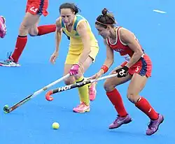 Melissa González (born January 24, 1989) is an American field hockey player.[1] At the 2012 Summer Olympics, she competed for the national team.[2] She was born in Peekskill, New York.[1] She attended Lakeland High School. González completed her collegiate field hockey career at the University of Connecticut. She gained multiple awards during her collegiate career including First Team All-American and Big East Conference Defensive Player of the Year. González has competed in World Championship games since 2014. She was named Best Player of the Tournament at the 2017 World League Semifinals in Johannesburg, South Africa. González's Olympic experience includes the 2012 Olympic Games in London, England, and the 2016 Olympic Games in Rio de Janeiro, Brazil.[3] In addition to playing, she has been a volunteer assistant coach at UConn, Yale and the University of Massachusetts.[4]