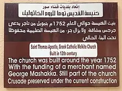 The Melkite Cathedral of Saint Thomas was built in 1752 and features a facade of Gothic arches. It is situated next to the offices of the Archeparchy and the residence of the Archeparch. During excavations underneath the cathedral remains of the original church from the 12th century were discovered and preserved.[13]