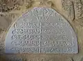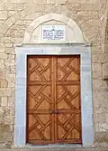 1968 plaque at Saint Thomas commemorating Haddad's efforts, that translates: "History of St. Thomas Cathedral in Tyre: Athanasius Al-Sabbagh, our bishop, built this church with a high edifice. Above which I led the Crusader army forward, and our shrouds were worn out, then rain rose. We are neighbors of the blacksmith of the one who loves the world, Imran our bishop, and the surgeons were decorated with their intercessor, Iman Thomas, the dawn of faith. He restored her clothes, found her, and decorated her, and she became a masterpiece of perfection. And behold, her bishop became like a crown praising his favor in gratitude. 1968"
