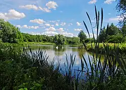 The park has a visitor centre, cafe, sensory garden, nature trail, climbing forest, memorial garden, stepping stones, bridges, bird hides, a dam, a troll bridge, sports grounds and cricket fields.[2] A parkrun takes place every week.[3] The park was given a Green Flag Award in 2018.[4]