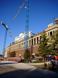 A massive renovation project was unveiled for Memorial Stadium in the fall of 2005.[14] The "Illinois Renaissance" project began after the completion of the 2006 football season, and was completed just days before the 2008 season began. The concourse areas on all four sides of the stadium were improved with better concession and restroom facilities. Additionally, the concourse areas were connected all the way around the stadium for easier passage between the east and west stands. A permanent, 5,000-seat structure was built on the north end of the stadium, and the existing scoreboard and video replay screen was moved to the south end zone. The south horseshoe was planned to be filled in down to field level, and would have completely connected the east and west stands. The horseshoe improvements, which were not implemented, would have increased seating to 14,000 seats behind the south end zone. The capacity of the west stands will be significantly reduced in order to build a large press box and luxury suite area at the top of the balcony. The new boxes will be three levels tall and will extend the entire length of the field. The new capacity of the stadium after the renovation will be 62,143. This $100 million project will be largely paid for by sales of the stadium's new suites and luxury seating in the west stands. The field also got a new FieldTurf playing surface.