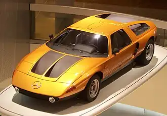 The first version of the C111 was completed in 1969, and presented at the 1969 IAA in Frankfurt. The car used a fiberglass body shell and with a mid-mounted three-rotor direct fuel injected Wankel engine (code named M950F). The next C111 appeared in 1970; it was shown at the 1970 Geneva International Motor Show. It used a four-rotor engine producing 260 kW (349 hp).[1] The car reportedly could reach a speed of 300 km/h (186 mph).[5]