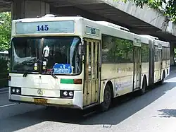 The step-entrance version was known as the O405. A 3-axle articulated version was also built known as O405G and a trolleybus as the O405T.[1] There were two generations of O405, designated as O405 MkI and O405 MkII. Most of them have their boxy roof dome (slightly arched) with a double-curvature windscreen, separately mounted destination indicator and pantograph system windshield wipers that was used on some buses such as the Dennis Dart, Leyland Lynx, MAN NL262 and the MAN SL202.