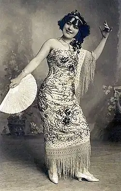 Having studied in Porto as a primary school teacher, Blasco began her theatrical career in 1888 at the Teatro Chalet in Porto, having run away from home. At that time she used the pseudonym, Judith Mercedes. She then moved to what was then the Teatro do Príncipe Real in that city. With her reputation preceding her, she went to Lisbon and played at the Teatro do Rato, before returning to Porto. Coming from a conservative background, she chose to use pseudonyms to avoid social stigma. Her daring costumes and provocative roles would give rise to a series of scandals during her career. She returned to Lisbon in 1890 to join the company of the Teatro da Trindade. Her first performance there was in a vaudeville called Mademoiselle Nitouche. She also performed in operettas at the same theatre. In 1891, also at the Trindade, she performed in the play, Miss Helyett, considered by many to have been her best performance. At this time she also began to perform songs in French, to great acclaim.[1][2][3][4]