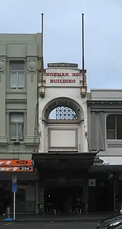 The Norman Ng Building, a former entrance to the Mercury Theatre, was retroactively added when it became clear that having an entrance to the nearby main street would be useful
