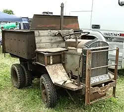 In 1941, their main product was the small 10F2 truck, a 10HP truck with a 2-ton payload. While intended for yards and factories, it could be used on the road (although the top speed was only 12mph) and was available with a cab. The standard wheelbase was only 5ft 2in, but there were options for longer wheelbases. Tyres were pneumatic with double wheels at the back. When loaded, it was also capable of towing 5-6 tons on a trailer.[5] At the 1947 Road and Transport Exhibition they showed a version of the 10F2 chassis with a steel tipping body 3ft 9in wide. Among its claimed uses were carrying materials for road repairs.[6]