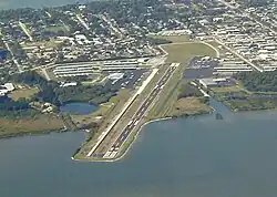 In 1966, the Brevard County Mosquito Control District deeded the Central Brevard Airport property over to the Titusville-Cocoa Airport Authority in exchange for ten acres of land located within Space Coast Regional Airport.[1][2] Central Brevard Airport was renamed Merritt Island Airport and became a public general aviation facility some time after initial construction took place in 1970 and facilities were completed in 1974.[1][3]