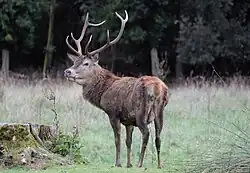 The Mesola red deer is closely related to the Barbary stag and the Corsican red deer, with whom it shares distinct genetic markers.[2] The latter two taxa descend from an ancient population of Italian red deer that otherwise survives only as the relict Mesola herd, which were imported to the Tyrrhenian islands and North Africa during antiquity, and have lower genetic diversity than that which is noticeable in subfossil remains of mainland deer.[2][3] The precise relationships between the three subspecies are however partly obscured by their all having undergone significant genetic bottlenecks, therefore obscuring potential founder effects.[3]