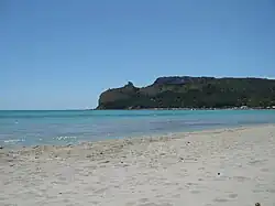 In the municipalities of the metropolitan area there are numerous beaches. One of the biggest is the Poetto beach of Cagliari and Quartu Sant'Elena, 10 km (6.2 mi) of fine sand in front of the Sella del Diavolo. To the east of Cagliari are the beaches of Geremeas (commune of Maracalagonis) and Solanas (commune of Sinnai), and to the west are the beaches of Nora and Santa Margherita (commune of Pula).The surrounding municipalities not part Metropolitan City of Villasimius, Castiadas and Domus de Maria possess some of the most famous beaches of Sardinia.