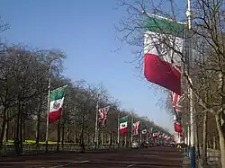 U.K. and Mexican flags lining up along The Mall in London for the State Visit for President Felipe Calderón to the U.K.; March 2009.