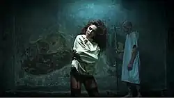 Anahí using a straitjacket on her music video for "Mi Delirio".
