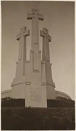 One of the successful endeavours of the time of occupation was the erection of the Three Crosses monument on the Bald Hill, designed by Antoni Wiwulski; Michał Węsławski was one of the initiators. He was also at the excavation of the remains of participants in the January Uprising on the Castle Hill.[103]