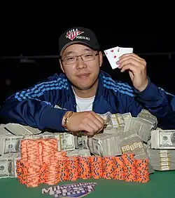 ![]() Chu, After winning the $1,000 No Limit Hold'em w/Rebuys event at the 2007 World Series of Poker | |