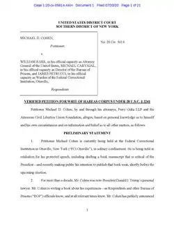 - ^ a b Feuer, Alan; Weiser, Benjamin (July 21, 2020). "Michael Cohen Claims in Suit He Was Imprisoned to Stop Trump Book". The New York Times. Archived from the original on December 18, 2020. Retrieved July 23, 2020.