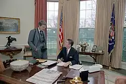 Michael Arthur Worden Evans (June 21, 1944 – December 1, 2005) was an American newspaper, magazine, and presidential photographer. He was Ronald Reagan's personal photographer during his first term as president from 1981 through 1985.[1] Evans is best remembered for his 1976 iconic photo of Ronald Reagan wearing a cowboy hat taken while Evans was working for Equus Magazine, that made the covers of many magazines in the week after Reagan's death in 2004. He was nominated for a Pulitzer Prize while shooting for The New York Times.[2]