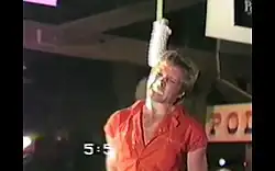 In January 1984, Griffin recreated a stunt he had originally performed in Houston, Texas on September 29, 1983.[10] A regulation 13-knot noose was used and applied by Johnny Darr, Sheriff of Sedgwick County, Kansas. Griffin's hands were tied behind his back, and he was pulled from the back of a horse. He made his escape in 37 seconds. According to Griffin "The pain was unbearable, I thought I was dying".[11]