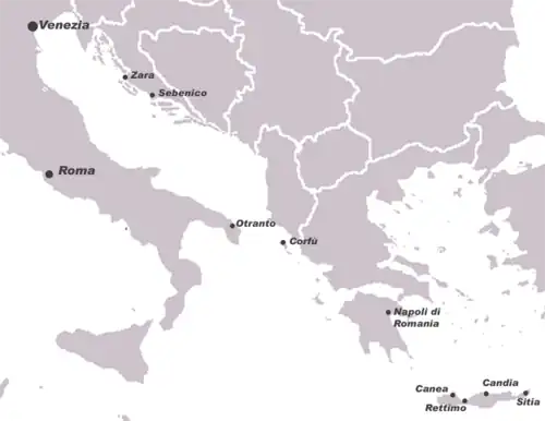Between 1537 and 1540 Sanmicheli experienced a period of intense work, during which he traveled almost continuously to inspect eastern fortifications together with his nephew, with whom personal and professional ties increased; he visited Dalmatia, Zadar, Šibenik, Corfu, Crete, and other places in the Stato da Màr.[21] On his return from the long journey he continued to work on the fortifications of the mainland (particularly Orzinuovi and Chioggia), but he also visited Vicenza for advice on the building of the Palazzo della Ragione, an occasion during which he most likely met the architect Andrea Palladio.