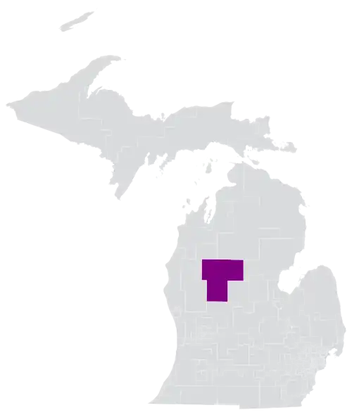 Michigan's 100th House of Representatives district (also referred to as Michigan's 100th House district) is a legislative district within the Michigan House of Representatives located in parts of Clare and Lake counties, as well as all of Mecosta and Osceola counties.[2] The district was created in 1965, when the Michigan House of Representatives district naming scheme changed from a county-based system to a numerical one.[3]
