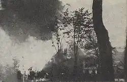 After some time, the men read from the list were divided into several groups and driven to four barns located in the southern part of the village – belonging to Władysław Dulęba, Wawrzyniec Gil, Antoni Grabiński and joint Bolesław Biela and Władysław Wątrobiński. A group of men detained in the morning at the edge of the forest (their names were also on the proscription list) was brought to the latter building. Dozens of men locked in Grabiński's barn managed to open the gate and get outside, but German policemen surrounded them in a semi-circle, then pushing back with rifle butts and pushed them back into the building. Victims crammed into barns, the Germans shelled and threw grenades at them, then set fire to the buildings. Most of the victims probably burned alive[46][47]