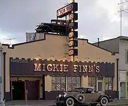 Fred and Barbara Soetje opened Mickie Finn's on October 28, 1960. They converted an old warehouse on University Avenue in the Hillcrest neighborhood of San Diego, into a "Gay '90s / Roaring '20s / Swinging '30s" nightclub. Finn was a piano player from San Francisco and had recently received a business administration degree from San Jose State College.[1] He considered Washington and Hawaii for his planned nightclub, but chose San Diego because of logistics—he could not afford to transport his collection of old nickelodeons, 1890s pictures, and various turn-of-the-century items, with which he planned to decorate the new club, to the more distant locations.[2]