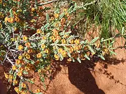 Micromyrtus flaviflora is widespread and common in desert, growing on red, sandy dunes and plains mainly in inland Western Australia, but also in adjacent areas of the Northern Territory and South Australia.[3][4][5]