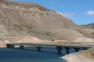 Prior to the construction of the Blue Mesa Dam, US 50 did not cross the Gunnison River there, and a portion of the old highway can be seen descending into the lake. The Blue Mesa Middle Bridge was built in 1963.[1]