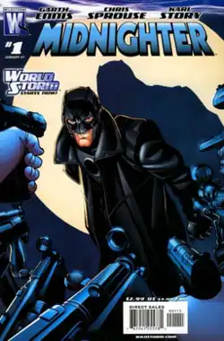 Midnighter is an American comic book series published by WildStorm, first issued in November 2006. It is a spin-off from The Authority (which is itself a spin-off from Stormwatch), a superhero team comic book created by Warren Ellis and Bryan Hitch, and follows the solo adventures of Midnighter, "the greatest tactician in the history of mankind". The first six issues were written by Garth Ennis, followed by three issues made by different writers; the last eleven final issues were written by Keith Giffen. Midnighter ended with its twentieth issue, followed by the limited series Number of the Beast. The series is also known as Midnighter (Volume 1) to differentiate itself from the character's 12-issue latter series first published by DC Comics in 2015.