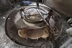 The noodles are cut using both modern and traditional tools. Traditional tools include a large circular cutter with eight blades, which are operated by several people. The cutter is placed over a mortar or basin with a sieve to catch the cut noodles. Once cut, the noodles are spread out and dried.