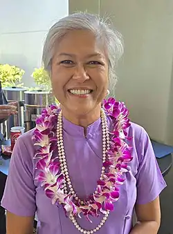 2. ^ "A Burmese rose in Hawaii works for a stronger homeland s". The Myanmar Times. 5 June 2019. Archived from the original on 2021-03-28.